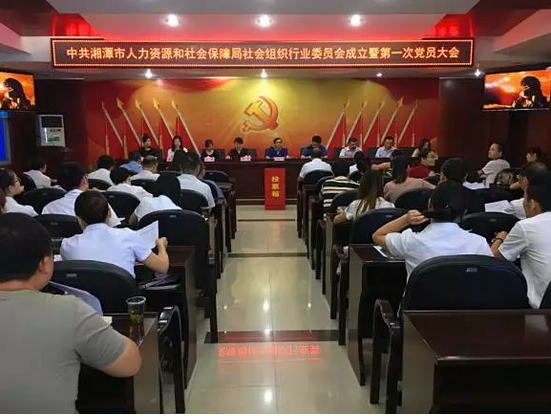 2017年8月10日上午,中國共產黨湘潭市人力資源和社會保障局社會組織行業(yè)委員會成立暨第一次黨員大會在湘潭市人社局四樓會議室勝利召開。湘潭市委組織部副部長、市人力資源和社會保障局黨組書記、局長陳鐵平,黨組副書記、副局長李斯盛等人社局黨員、領導,湘潭金豐人力資源有限公司、華順人力資源有限公司、湘楚人力資源有限公司等人力資源企業(yè)的黨員共60多人出席了大會。大會由湘潭市合作醫(yī)療管理委員會辦公室主任陳爽主持。